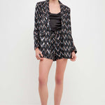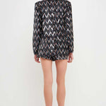 Everyone needs a fun Sequin Blazer in their closet, including you! This blazer is unique because it's created with velvet fabric that features multicolored sequin embroidery in an eye-catching chevron pattern. You can pair this blazer with the matching shorts or layer it on top of your favorite mini dress  to spice up your look. Regardless of how you style it, you're sure to be warm and fashionable!