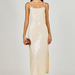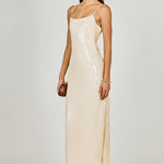 This sleeveless Sequin Slip Dress boasts a fitted sheath silhouette that accentuates your curves, while the deep V-back adds a touch of sexy sophistication. The side slit allows for easy movement, and the adjustable straps ensure the perfect fit. Perfect for parties, proms, and special occasions, this dress is a show-stopper. Get yours now and shine on!