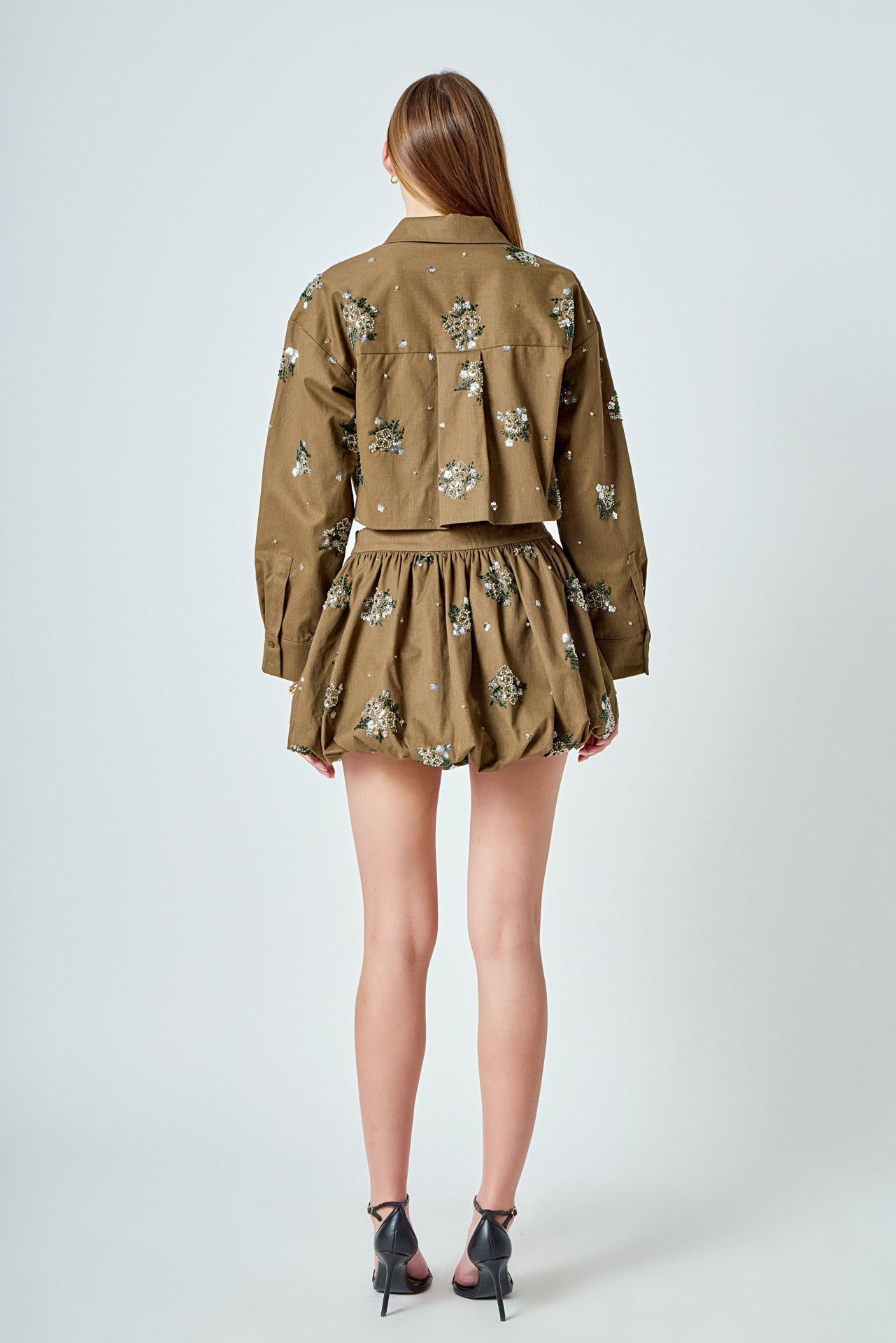 Eve Sequined and Beaded Low Waist Bubble Skirt