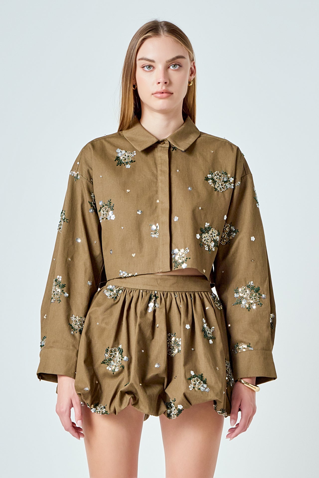 Bring a touch of drama to your look with our Eve Sequined and Beaded Bubble Skirt. Designed with a flattering low-rise waist and a playful bubble silhouette, this skirt sparkles with intricate beadwork and shimmering sequins. Perfect for nights out, it offers both style and comfort in a refined design. Pair it with its matching top for a high-impact ensemble.