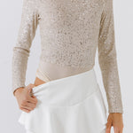 Shine bright in our Sequins Bodysuit. Made from a beautiful sequin fabric this top features a round neckline a bodysuit design and long sleeves that will turn heads when you walk into the room. It's the perfect way to glam up any outfit. Our Sequins Bodysuit is sure to take your wardrobe up to the next level. Make a statement and be the envy of all your friends.