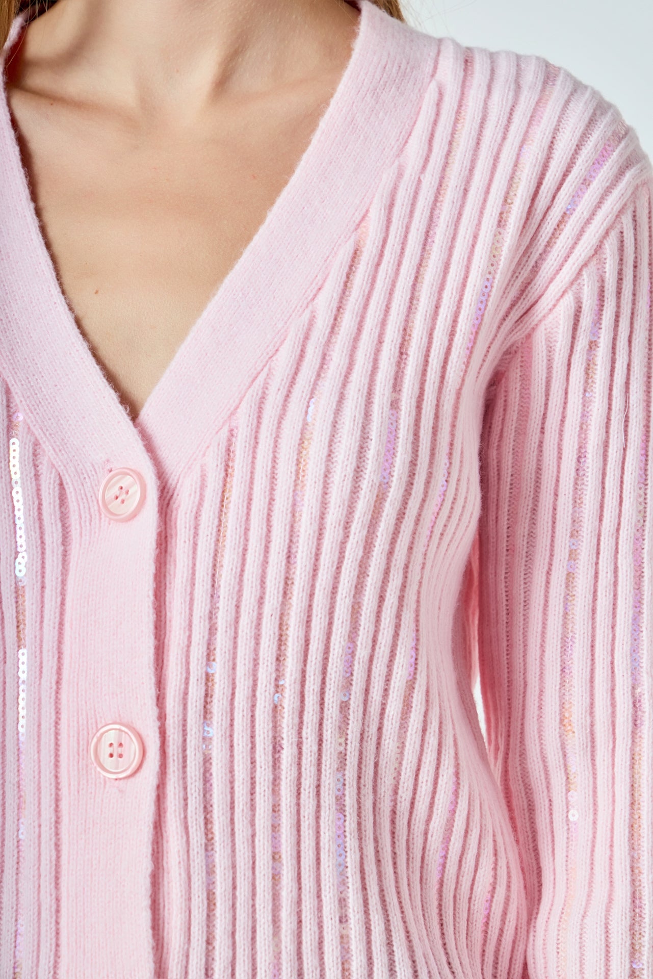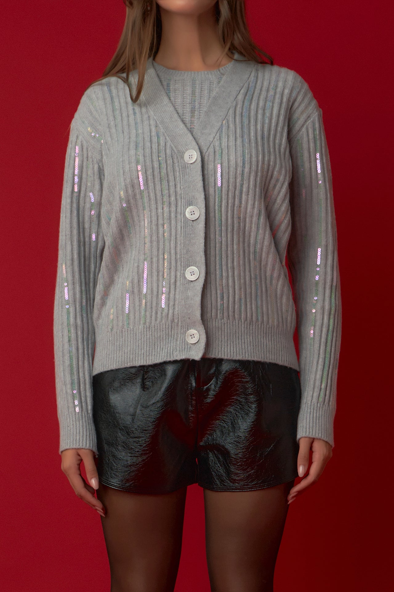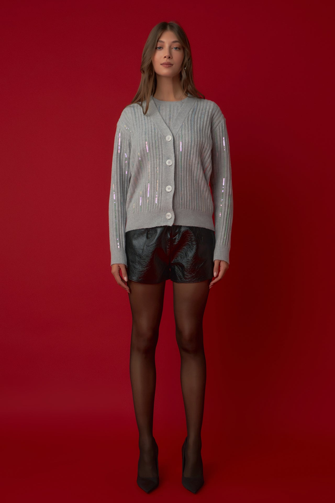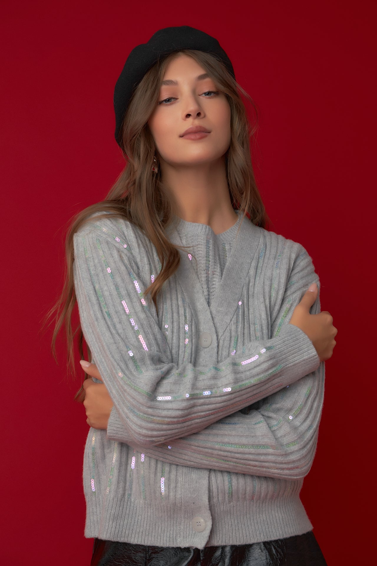 Unlock your style and sparkle brightly with this unique Sequins Cardigan! Featuring a relaxed fit and a V neckline this must-have knitted piece will make a statement wherever you go. The vertical stripe sequins give the cardigan a fashion forward edge and elevate even the simplest of looks. Get ready to shine with this trendsetting cardigan and look drop-dead glamorous. Shop now and turn heads!
