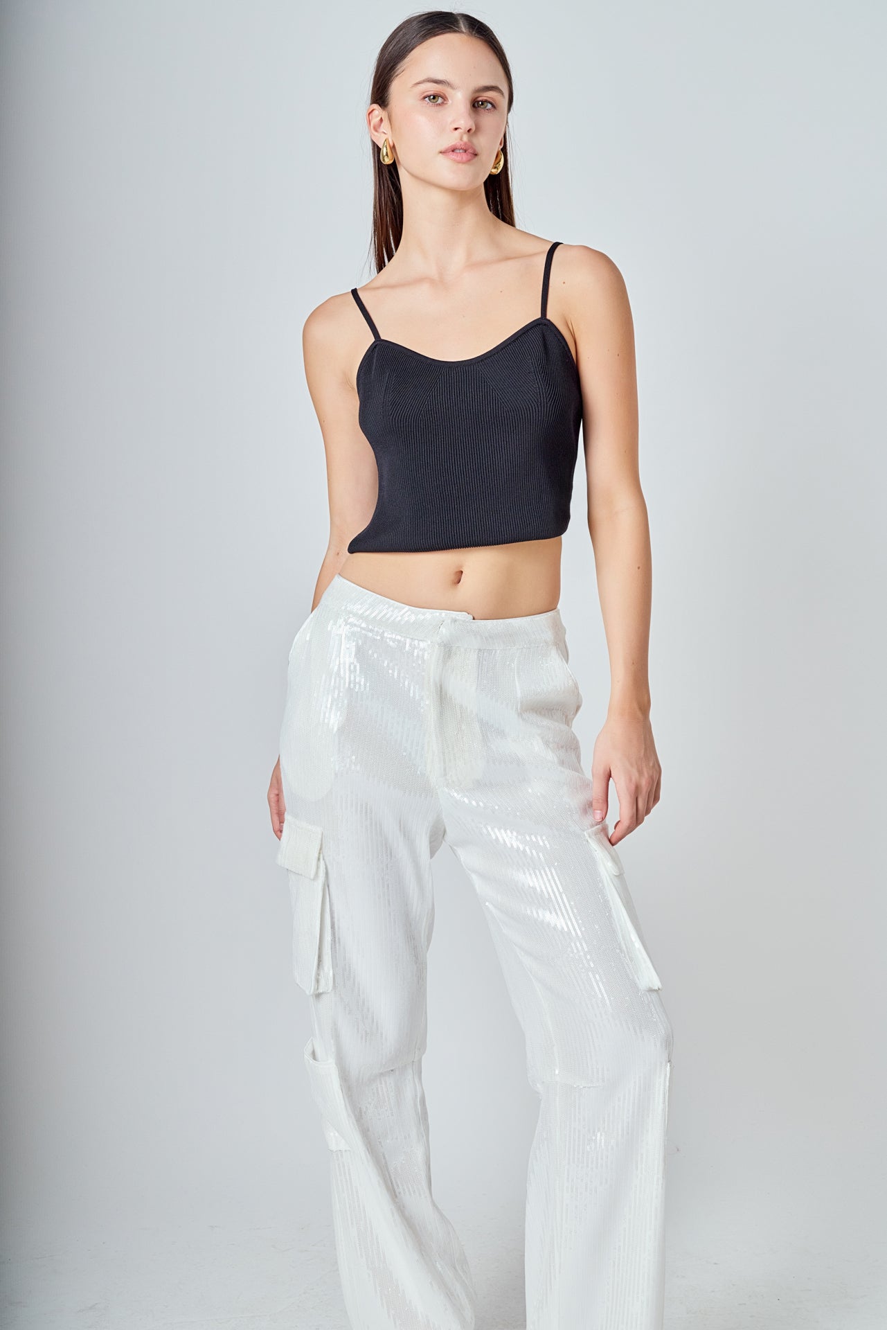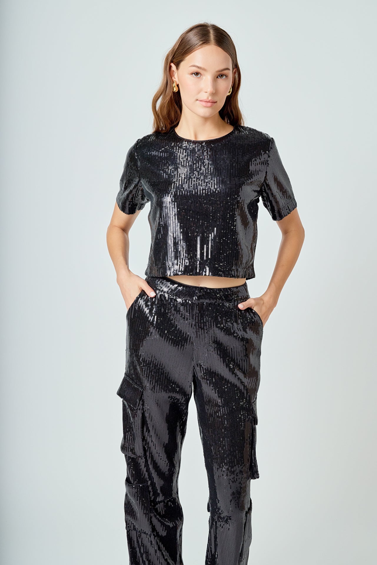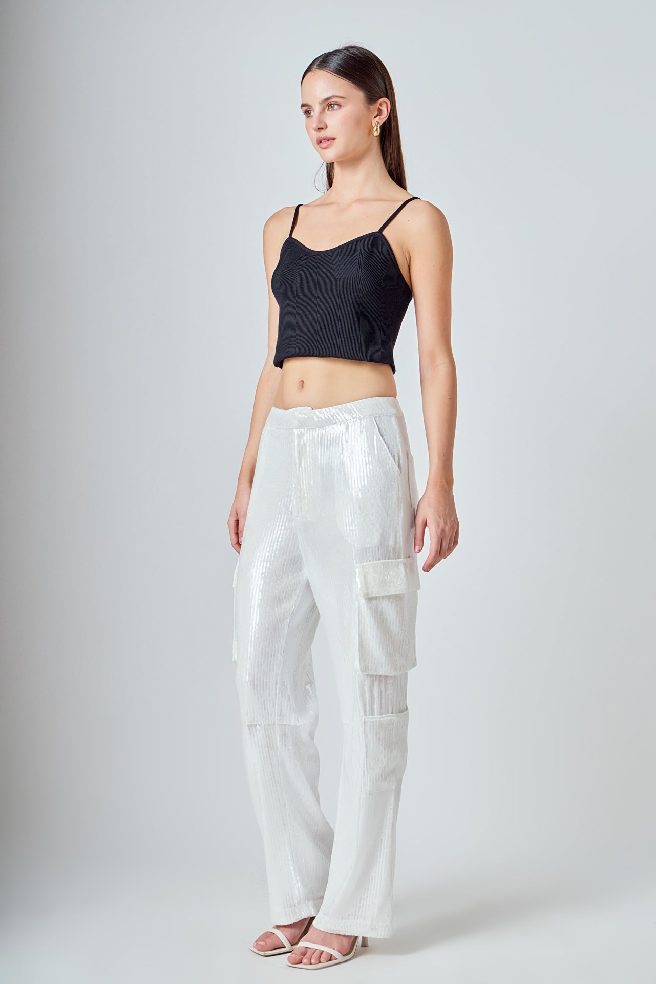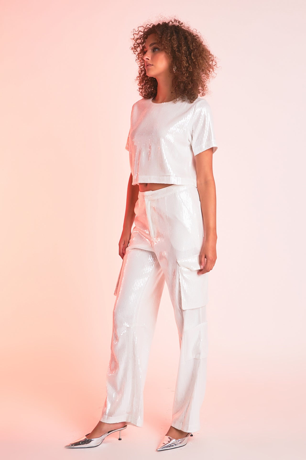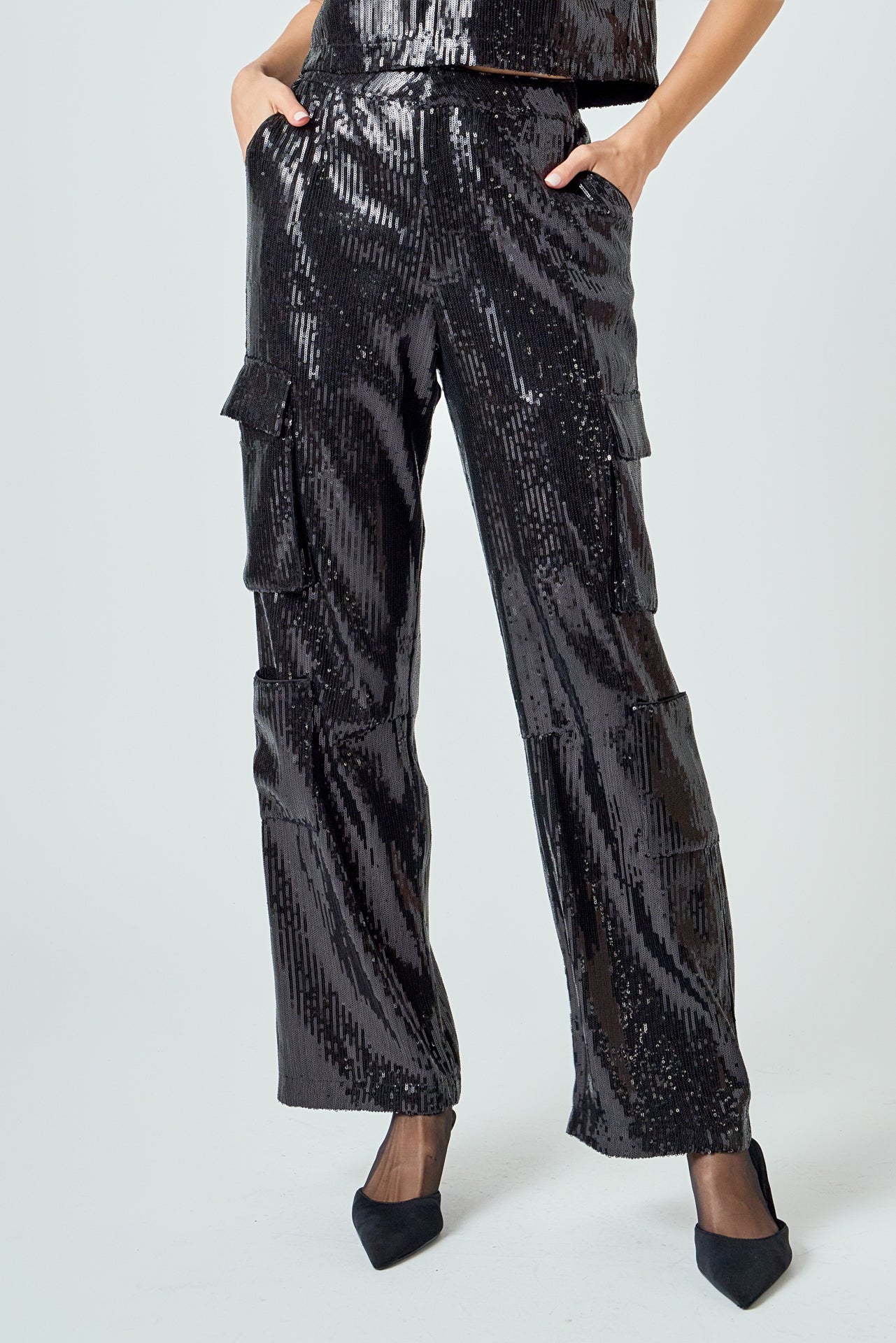 Add glamour to your wardrobe with our fashion-forward Sequins Cargo Pants. Our low rise cargo pant features luxurious sequins to captivate and add a little sparkle to your look. Featuring a side pocket detail you'll be sure to stand out with these sequins pants. Made with high quality fabrics these cargo pants are an absolute must-have for any fashion pant wardrobe. Shop now and show off those unique sequins!
