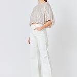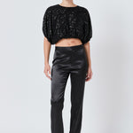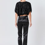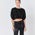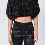 This stunning Sequins Cropped Puff Top combines classic and modern styling. The elastic sleeve and bodice openings provide a perfect fit while the classic balloon style design creates a beautiful feminine silhouette. The cropped design and back keyhole closure with button increase comfort and convenience. Enhance any wardrobe with this one-of-a kind top to stand out from the crowd. Perfect for all occasions, this sequin top is the perfect combination of fashion and function.