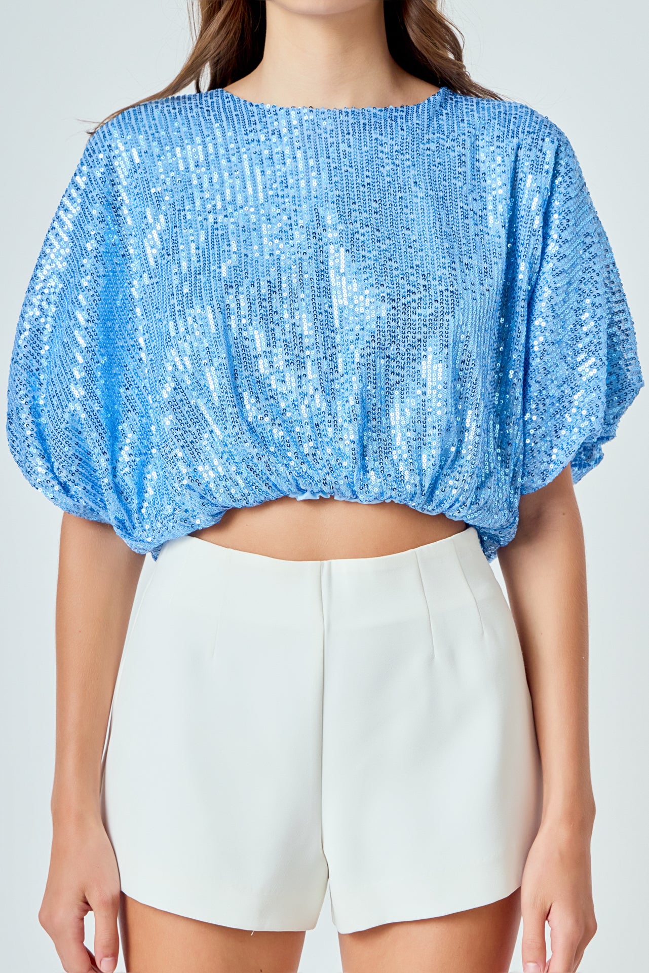 Sequins Cropped Puff Top