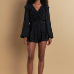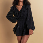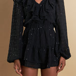 This one-of-a-kind romper features sequin detailing and ruffle hems that give a feminine feel. The elastic waistband makes our Sequin Ruffled Romper comfortable to wear all day long. You can pair this romper with your favorite sneakers and a jean jacket for a more casual look, or you can throw on a pair of heels and a faux leather jacket for a special occasion.