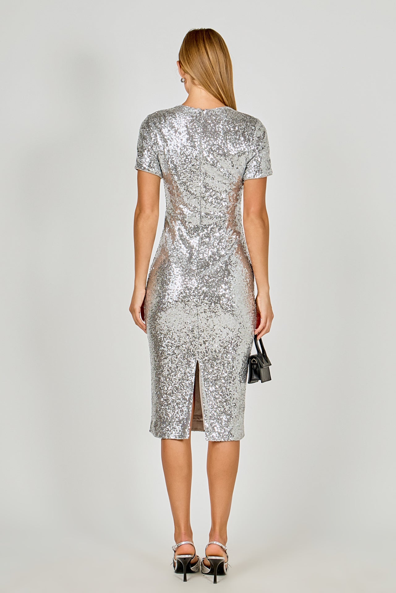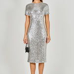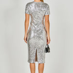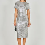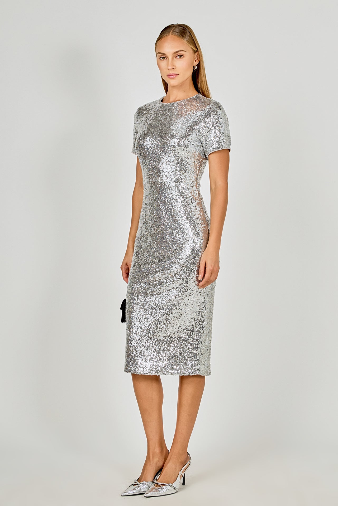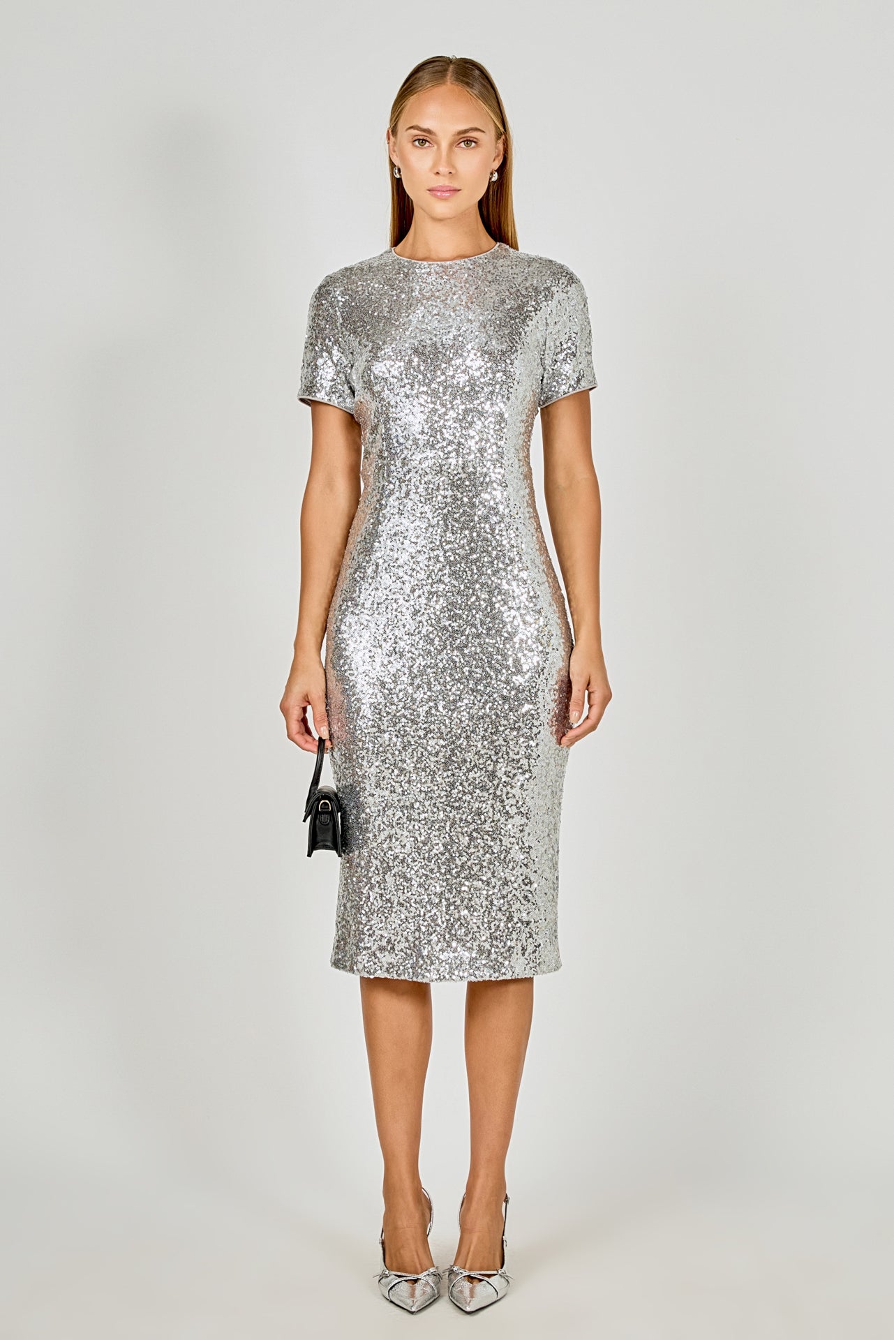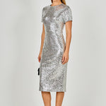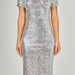 Our stunning Sequins Short Sleeve Maxi Dress will make you turn heads! This dress offers a glamorous sequin-covered fabric that glistens and sparkles as you move. The maxi dress is designed with a round neckline short sleeves and maxi length for an elegant silhouette.