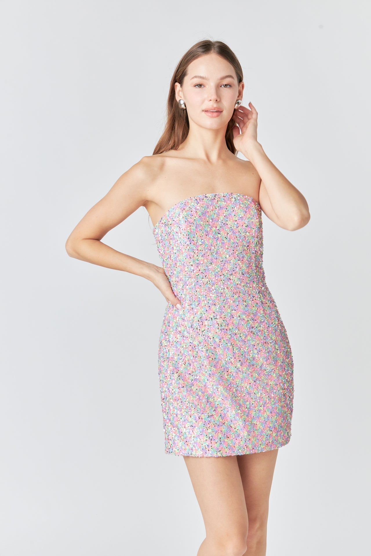 Shine bright and turn heads with our stunning Sequins Strapless Mini Dress! The shimmering sequins add a touch of glamour while the fitted design flatters every curve. Perfect for a night out or special event this mini dress will be sure to make a statement. The strapless neckline adds a hint of sexiness and the mini length shows off your legs. Elevate your wardrobe with this must-have dress perfect for any occasion. Don't miss out shop now and steal the spotlight! Available in multiple colors.