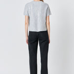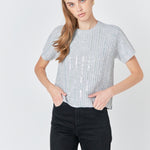 Look chic and stylish this season with our Sequins Sweater Top! Featuring a regular fit with stunning vertical sequins stripe this short sleeved top is perfect for any casual occasion. The stylish round neckline design adds to the glamour of this top. Constructed with great care and attention to detail this top is sure to have you standing out from the crowd. Don't miss out on this must-buy piece this season!