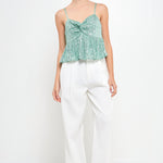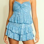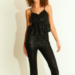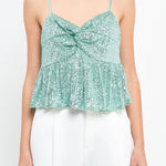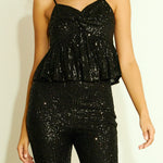 The Sequin Tank Top features feminine design details like a peplum silhouette and twisted bust knot. Plus, the adjustable spaghetti straps and side zipper allow you to ensure a snug and proper fit. The beautiful mini sequins add flair to any outfit and ensure you light up every room you walk into.