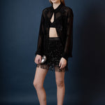Add instant sparkle to your look with our Sequined Tassel Mini Skirt! Covered in delicate sequins and finished with a playful tassel trim, this skirt is designed to turn heads at any night out or special event. The flattering mini length keeps it flirty and fun, while the lightweight construction ensures comfort as you dance the night away. Perfect for pairing with a sleek top or statement heels, this skirt is a must-have for fashion-forward wardrobes. Shop our Sequined Tassel Mini Skirt now and step out in style!