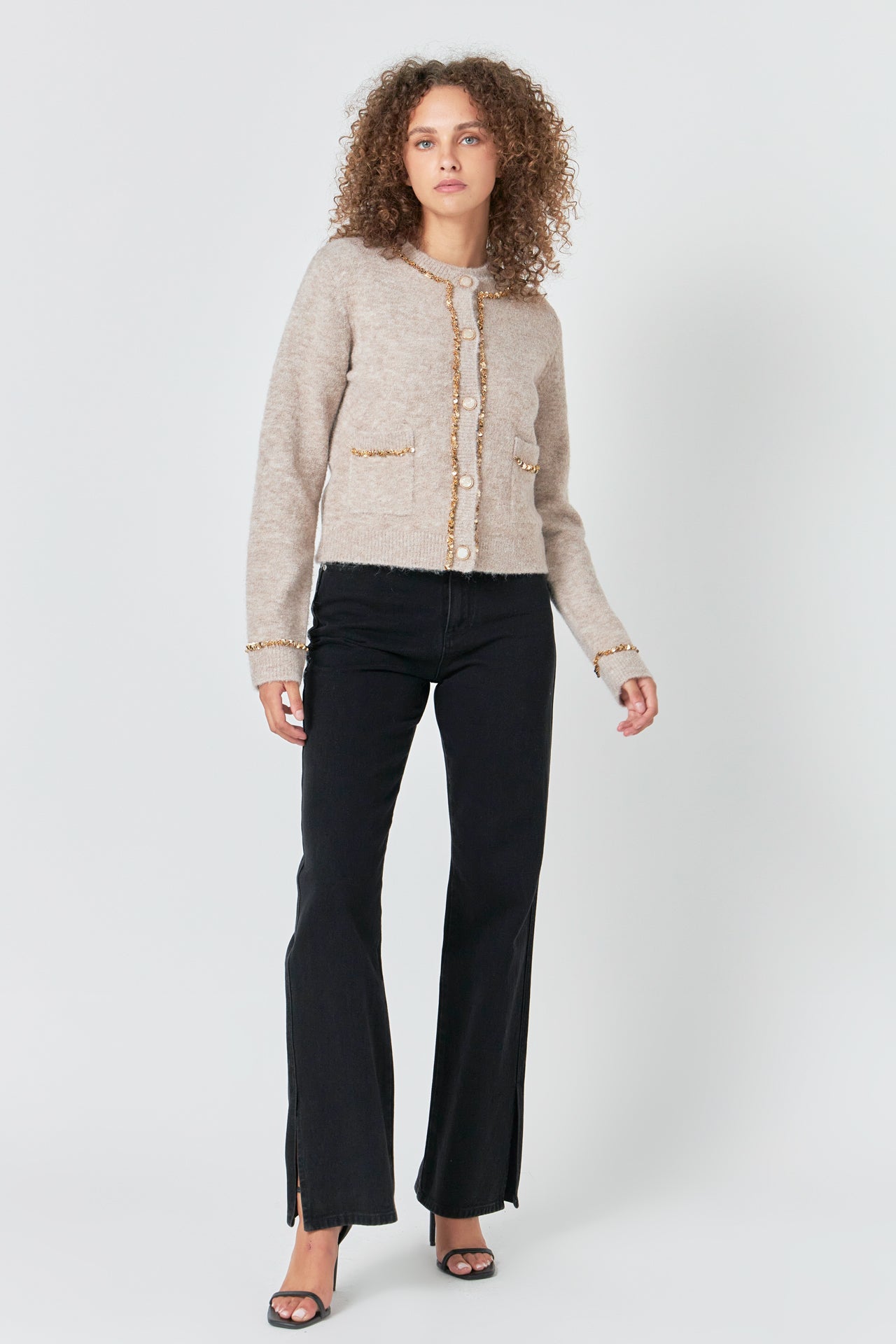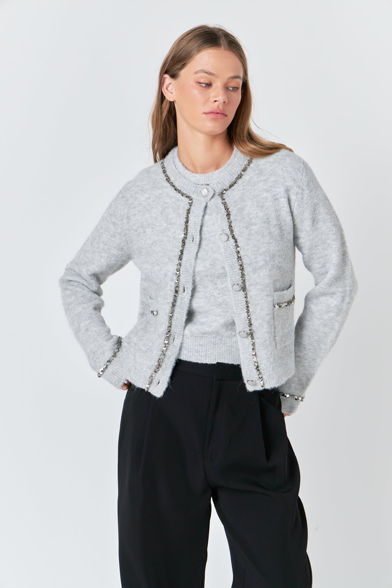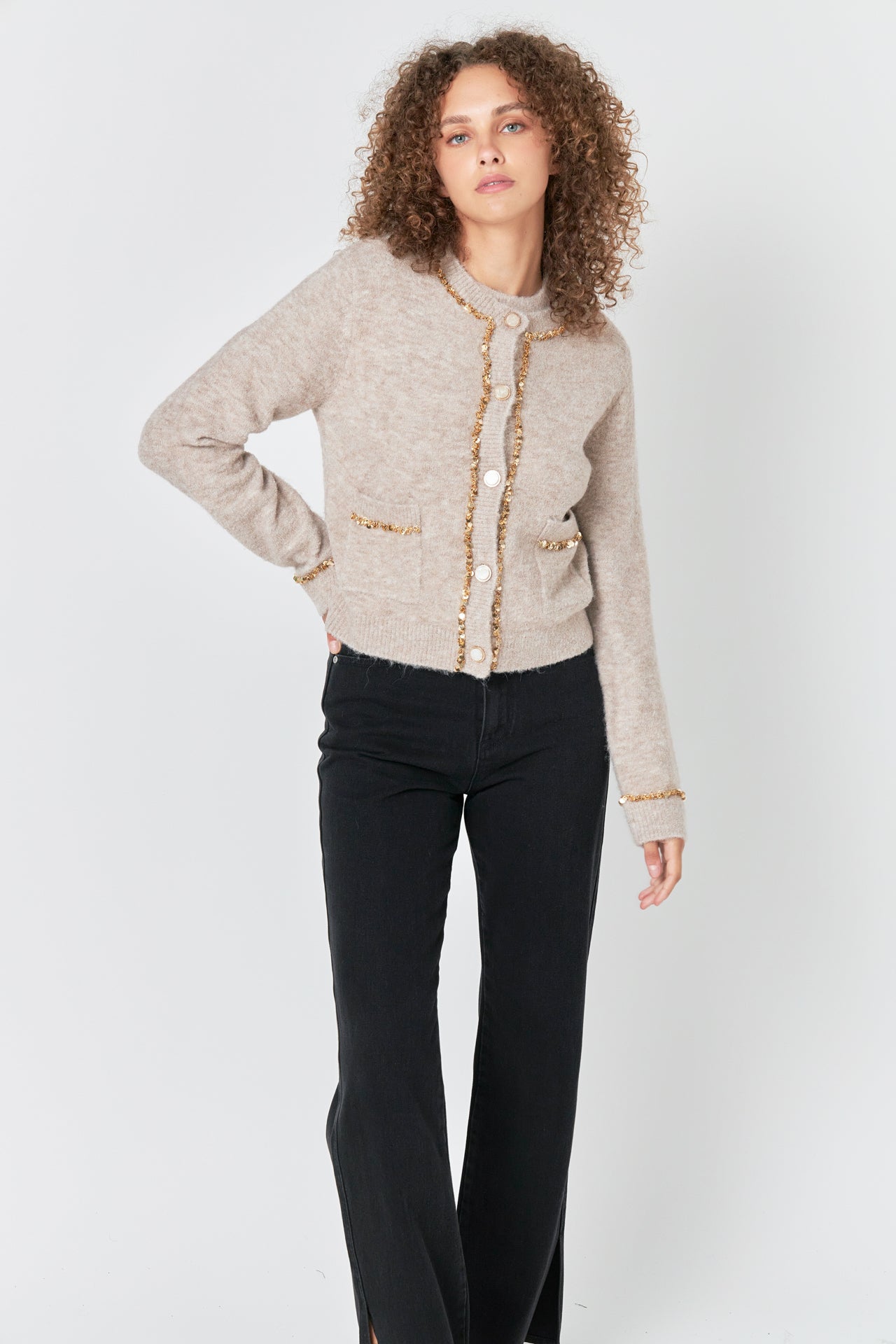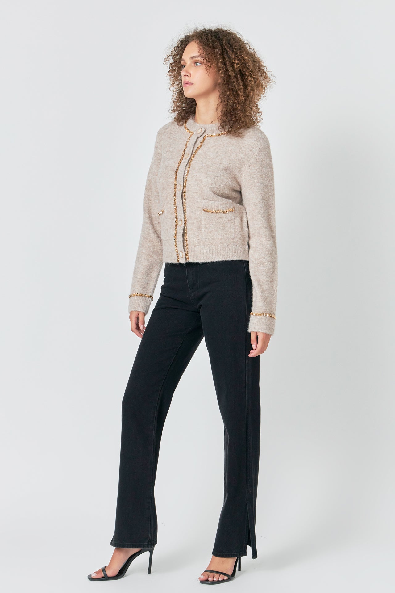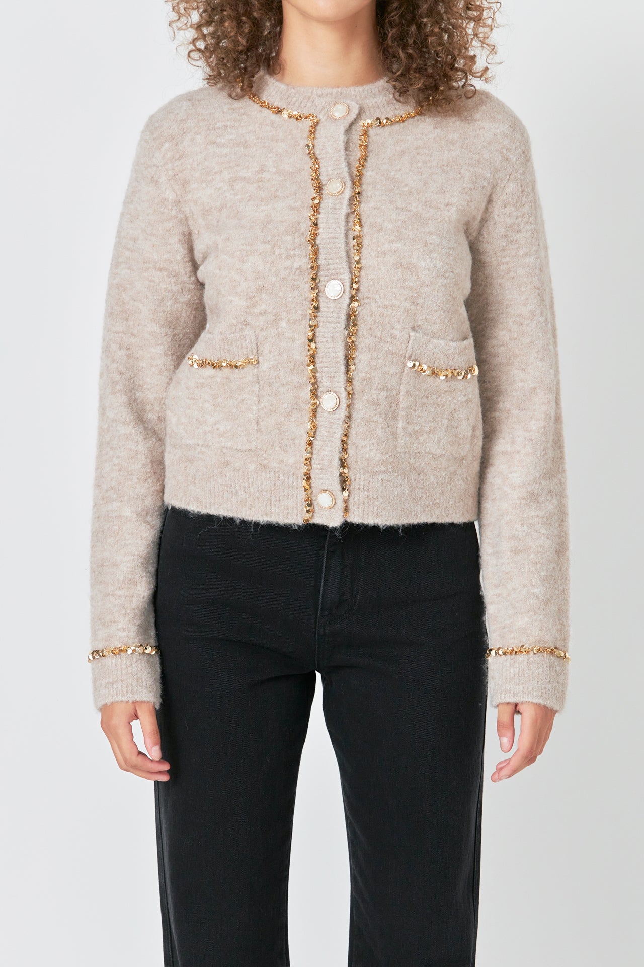 This beautiful Sequins Trim Cardigan sweater is perfect for any special occasion. It features stunning sequins trim details along with a comfortable round neck long sleeves and front button closure. With its stylish and chic look this charming cardigan is sure to be the perfect way to glam up your wardrobe. Get ready for all the compliments when you wear this stunning and eye-catching cardigan with your favorite jeans or dress.
