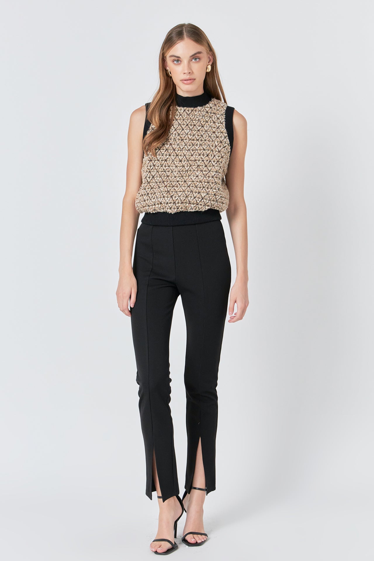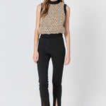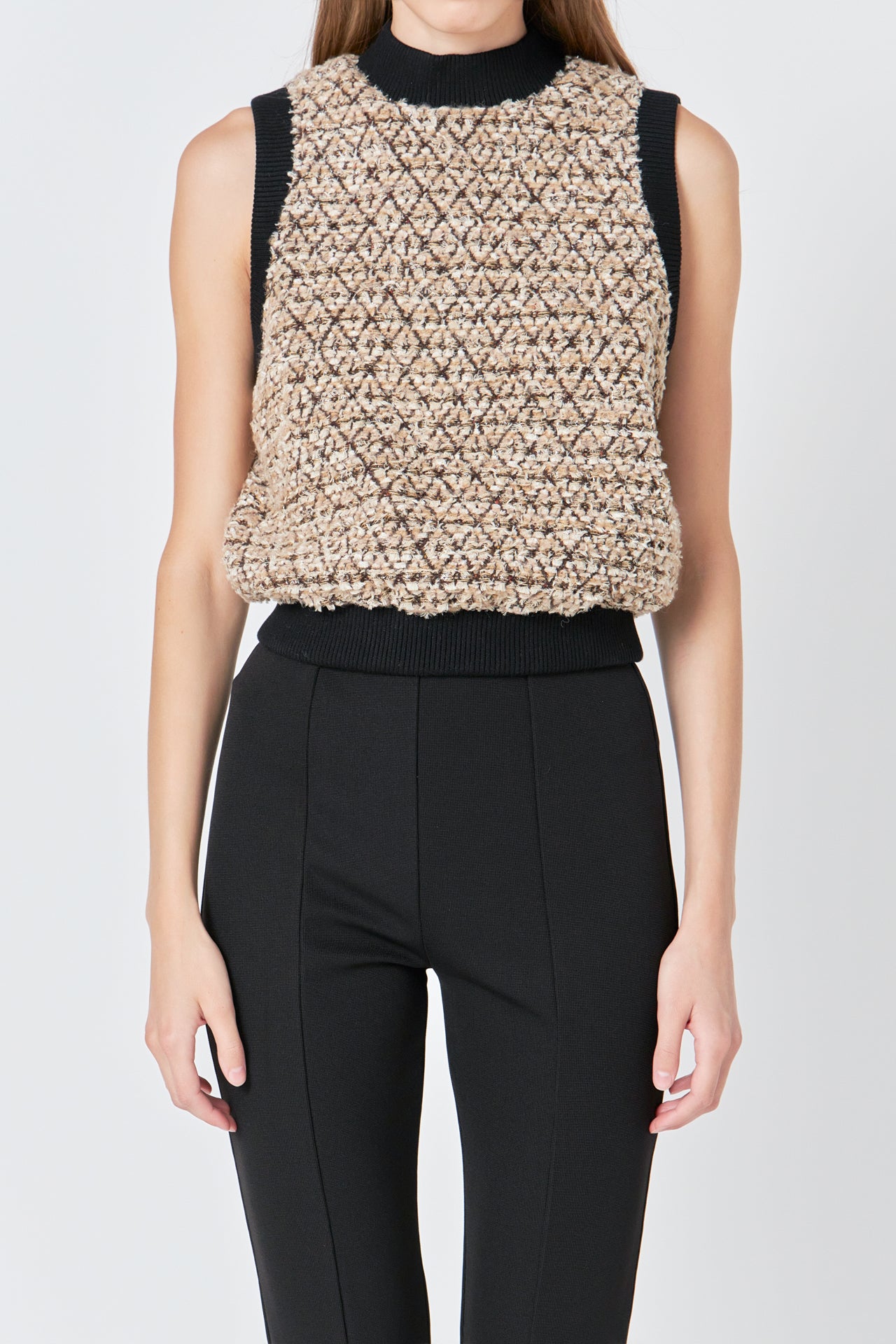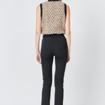 Add some glamour to your wardrobe with our Sequins Tweed Vest. Featuring a trendy mock neck design and eye-catching sequins tweed fabric, this vest is a must-have for any fashion-forward individual. The edgy rib detailing and convenient back zipper add sophisticated touches to this piece. Perfect for any occasion, this vest will elevate any outfit and make you stand out from the crowd. Stay stylish and comfortable with our Sequins Tweed Vest, made for the fashionista in you. Grab yours now and bring some shimmer to your wardrobe.