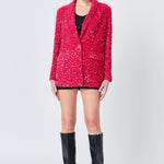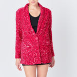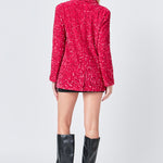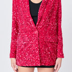 Our Sequins Velvet Blazer makes a statement like no other! It features a unique sequin velvet look a classically-styled collar and long sleeves as well as a pocket on the front. Perfect for any occasion this blazer will be sure to turn heads and make a lasting impression. This sophisticated and classy blazer is sure to elevate any look. With its high quality and unique style this Sequins Velvet Blazer is a must-have!