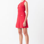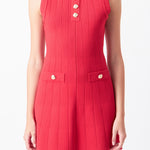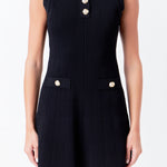 Introducing our gorgeous Shank Button Knit Mini Dress, a must-have for any fashionista's wardrobe. Its soft and cozy knitted fabric provides a comfortable fit, while the mini length and A-line skirt add a touch of femininity. The sleeveless design is perfect for warmer days and allows for versatile styling options. But what truly sets this dress apart are the shank button details that add a touch of elegance and uniqueness. Perfect for any occasion, pair it with sandals for a casual look or dress it up with heels. Elevate your style with our Shank Button Knit Mini Dress now!