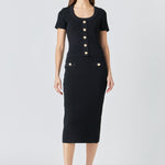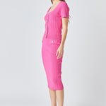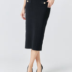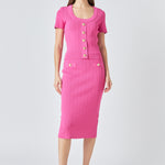 This knitted midi skirt features rib band at waist and front buttons that add a unique touch. The skirt provides excellent comfort and style making it a must-have for your wardrobe. It can be worn casually or dressed up for a special occasion. The fashionable midi length coupled with the shank buttons make this skirt a must-have for any fashionista. The skirt is comfortable durable and stylish making it perfect for any occasion. So don't miss the chance to snag this amazing skirt!