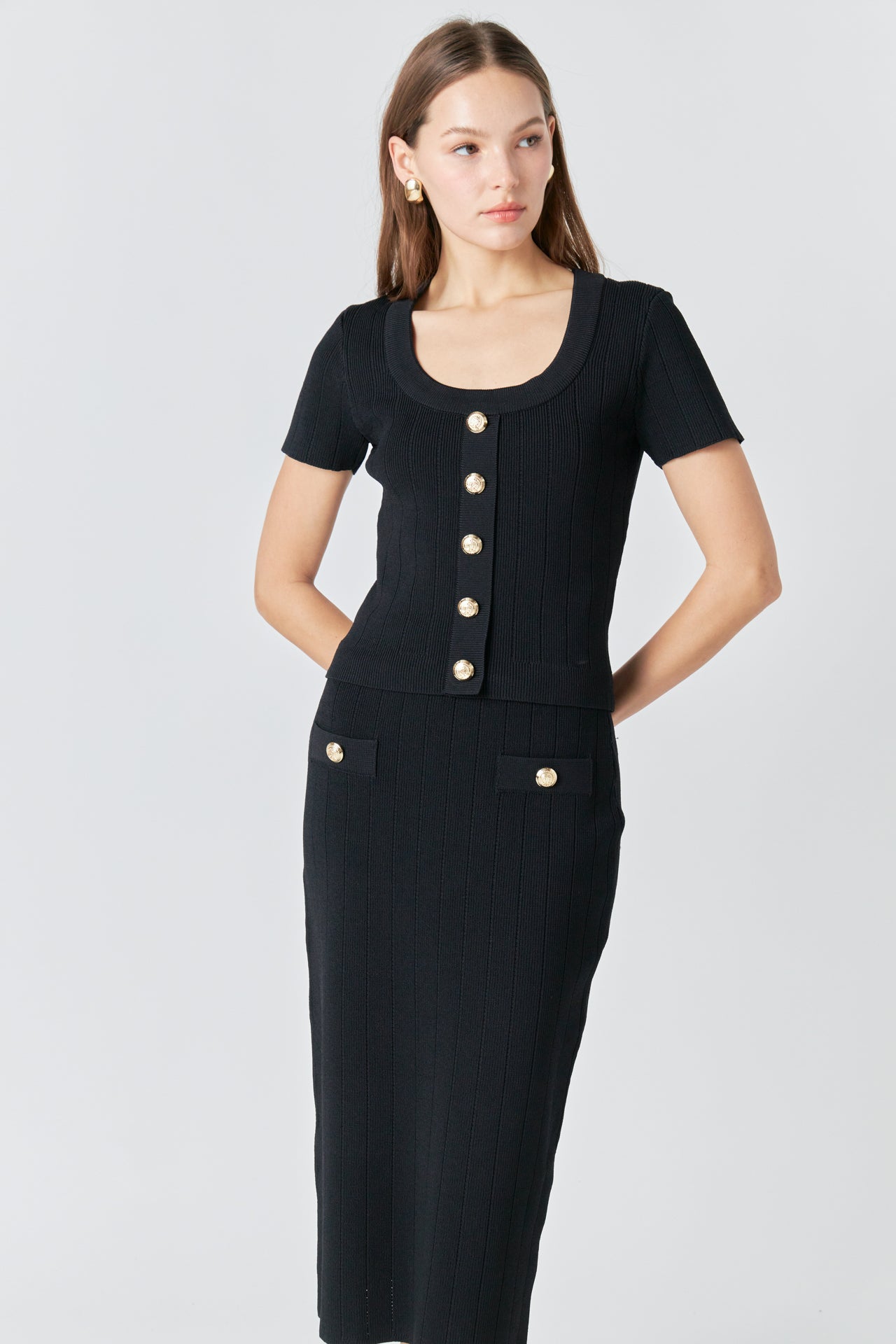 This knitted midi skirt features rib band at waist and front buttons that add a unique touch. The skirt provides excellent comfort and style making it a must-have for your wardrobe. It can be worn casually or dressed up for a special occasion. The fashionable midi length coupled with the shank buttons make this skirt a must-have for any fashionista. The skirt is comfortable durable and stylish making it perfect for any occasion. So don't miss the chance to snag this amazing skirt!