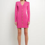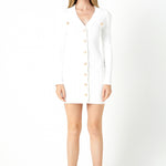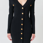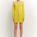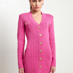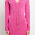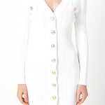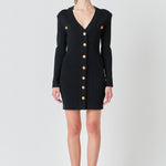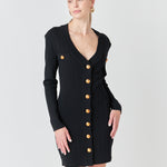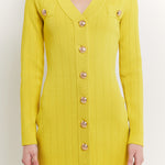Feminine, flirty, and fun- this is the perfect little knit dress. With a flattering v-neckline and shank buttons, this dress is perfect for a night out on the town. You'll love the fit and feel of the soft knit fabric. Dress it up or down with your favorite accessories for a look that's all your own.