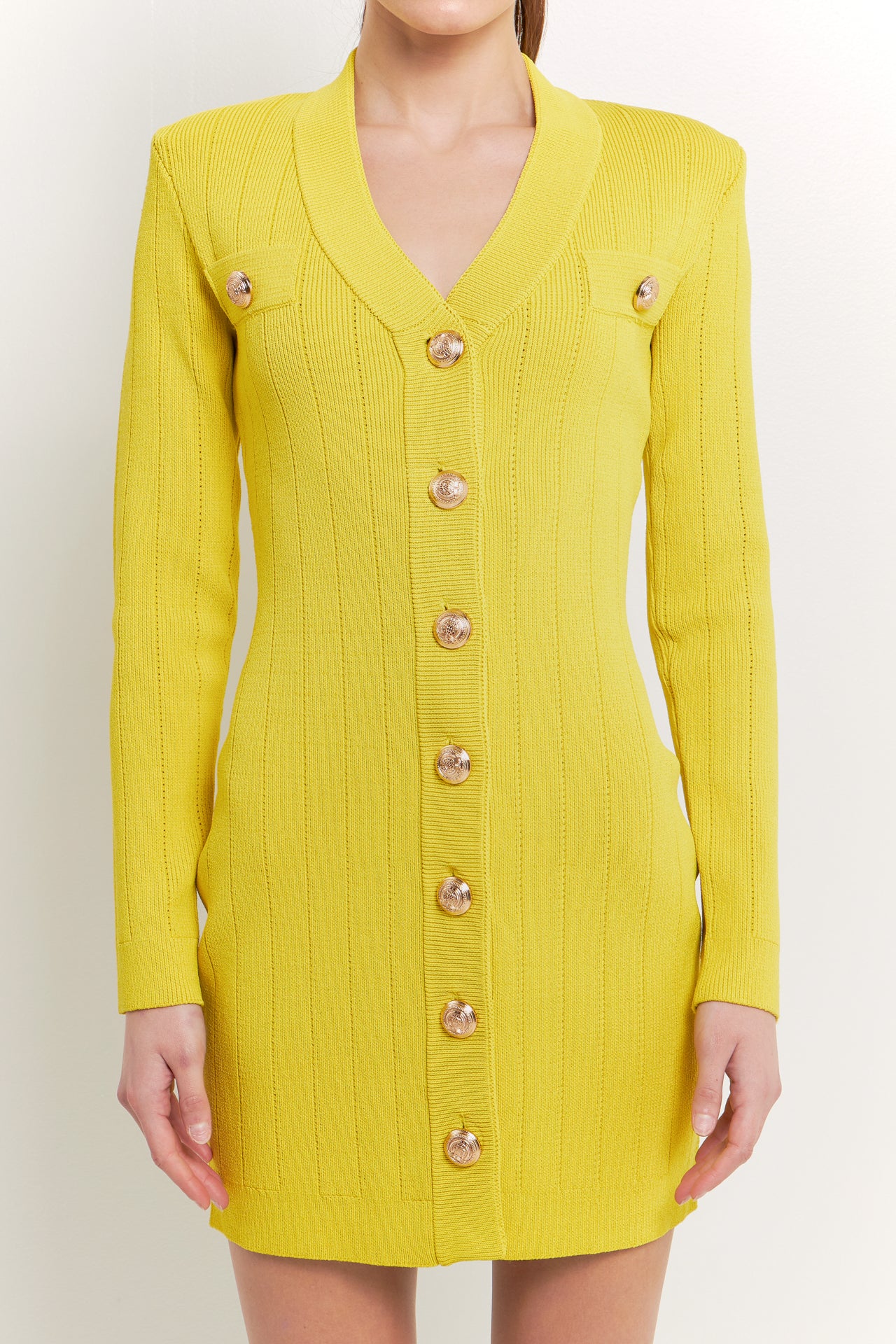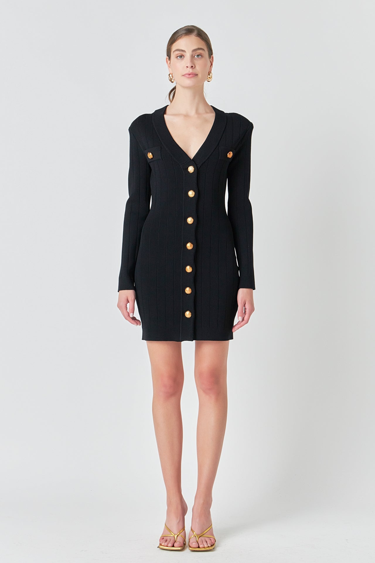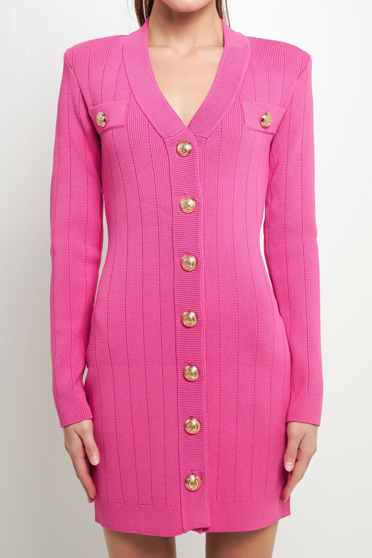 Shank Button V-Neckline Knit Mini Dress