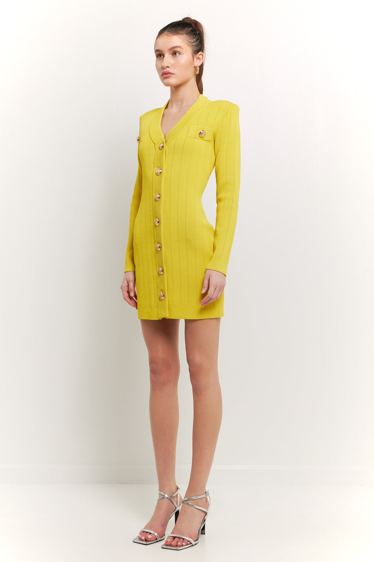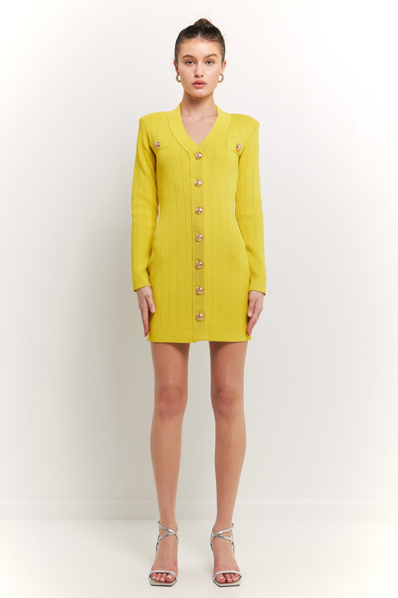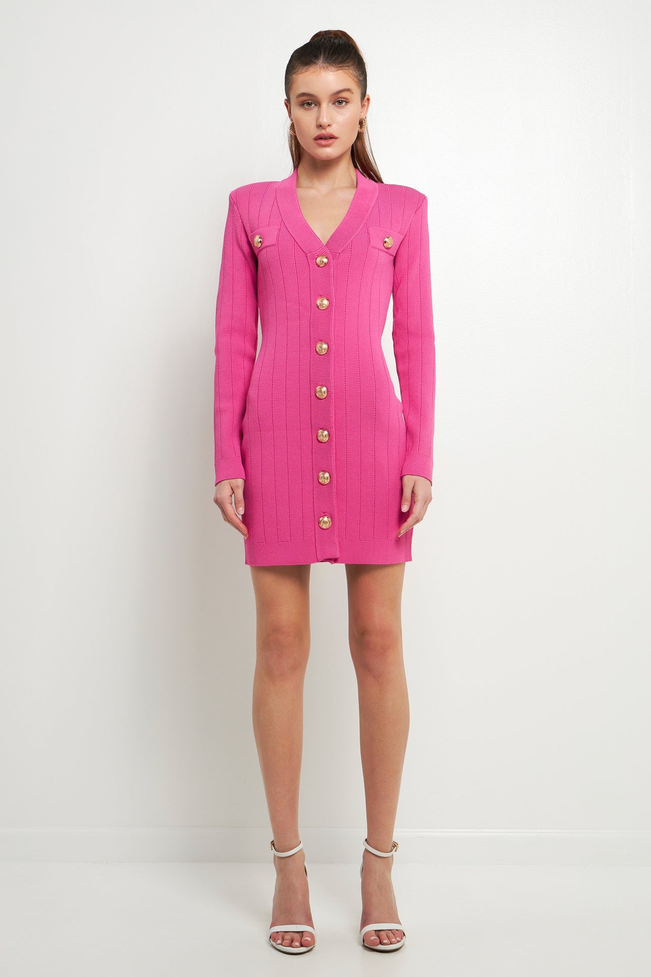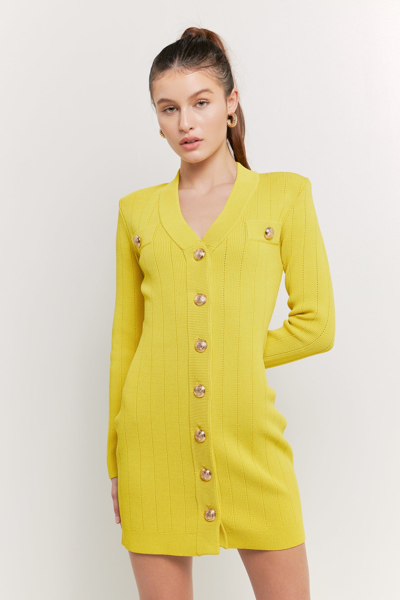 Shank Button V-Neckline Knit Mini Dress