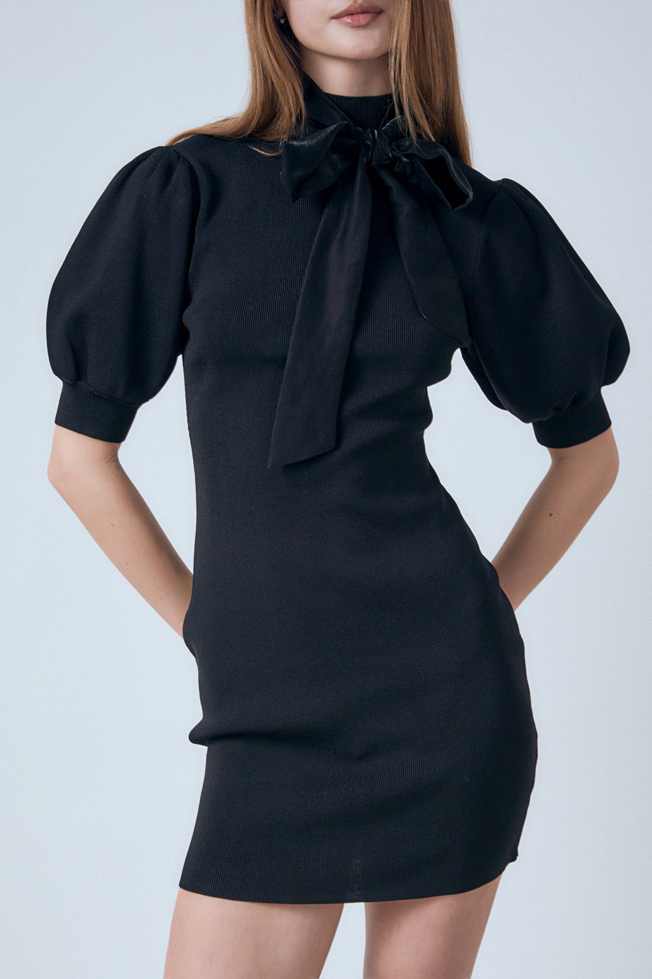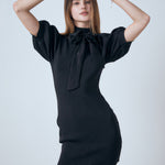 This Sheen Bow Tie Knit Mini Dress is a must-have for any wardrobe. The fitted knit fabric embraces your shape and the sleeveless design gives you a modern edgy look. Completed with a bow-tie neckline this mini dress exudes sophistication and elegance. This piece pairs perfectly with pumps or ankle boots making it an effortless versatile option for day or night. Be comfortable and fashionable with this stylish and timeless dress.