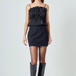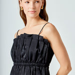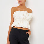 The Sheen Ruffled Strapless Top is a sophisticated versatile piece. Its strapless tube top style features accordion shirring at the neckline for subtle texture with elastic at the waist for a comfortable secure fit. A removable shoulder strap provides additional support and style options.