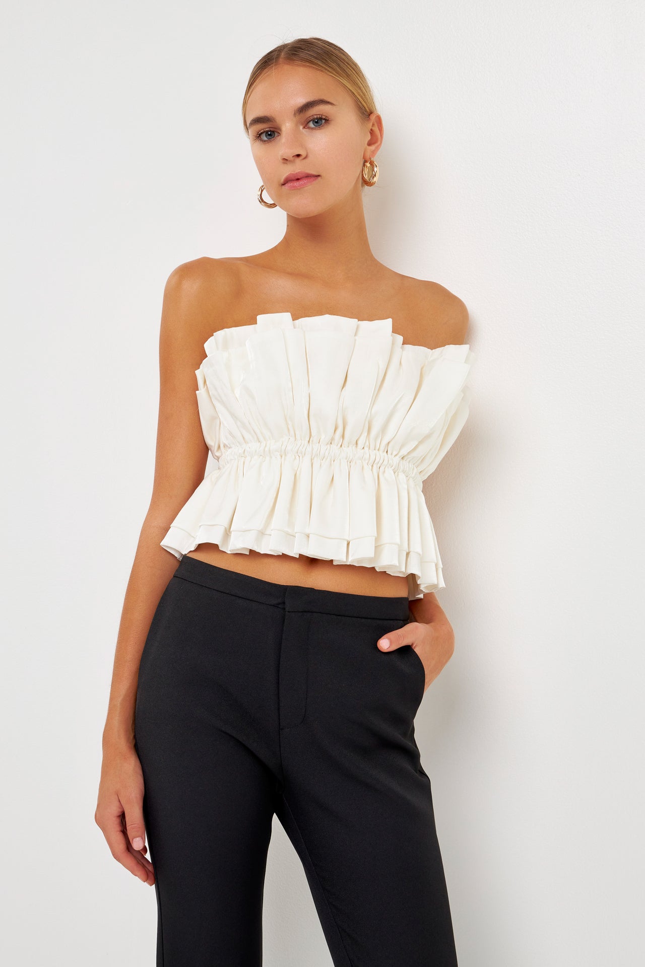Sheen Ruffled Strapless Top