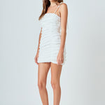 Shirred Mini Dress with Tie Straps
