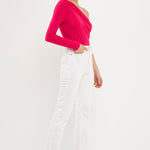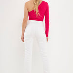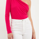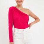 This Endless Rose Shirred One Shoulder Bodysuit is perfect for a night out or a day at the office. The one shoulder design adds a touch of elegance to this otherwise simple bodysuit. The ribbed knit fabric is figure-flattering and the baby snap buttons make it easy to get in and out of. This bodysuit can be dressed up or down to suit any occasion.