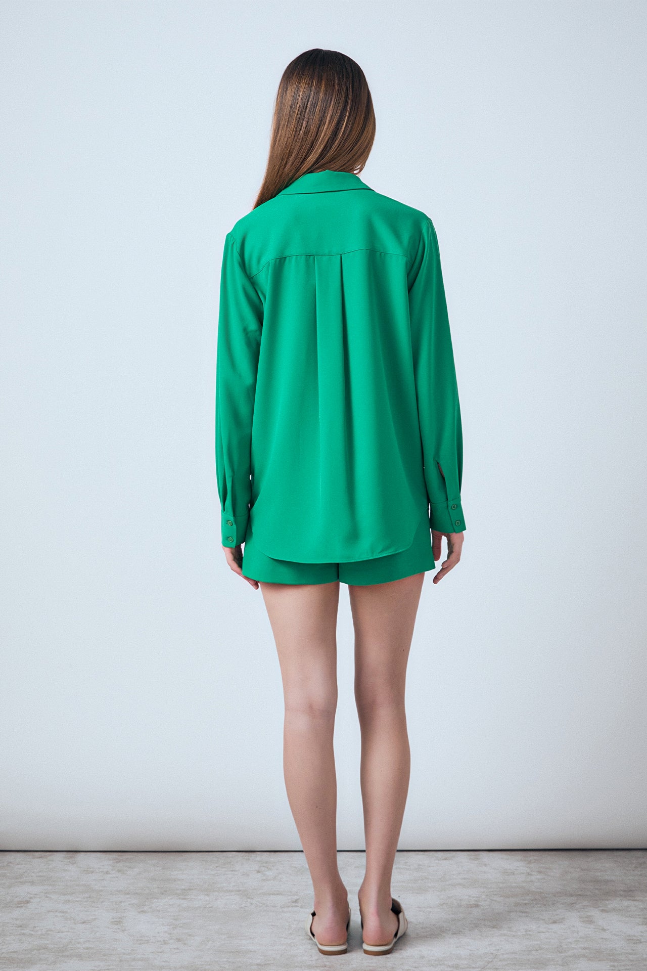 Introducing our must-have Shirt Blouse perfect for any occasion! Featuring a classic collar and long sleeves with chic cuffs this versatile top is sure to elevate any look. The back yoke and box pleat provide a flattering fit while the convenient front button closure adds a touch of sophistication. Made with high-quality materials this shirt blouse is both comfortable and stylish. Whether dressed up with a skirt or down with jeans it's a timeless addition to your wardrobe. Shop now and embrace effortless elegance!