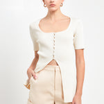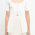 Short Sleeve Long Knit Button Up