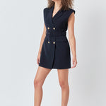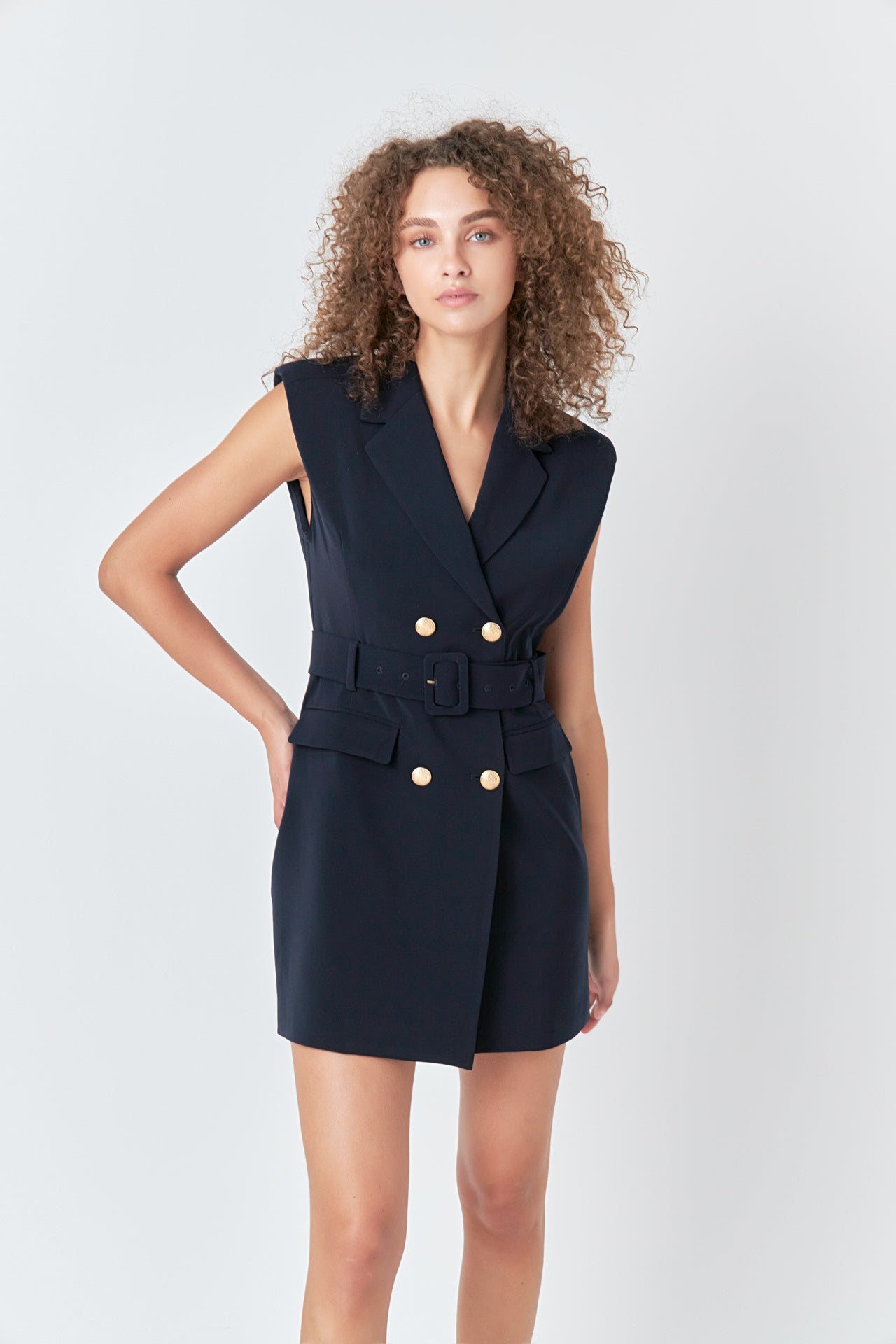 This Shoulder Pad Double Breast Mini Dress is perfect for a professional look with a touch of edge. Its slim fit and mini length provide a sleek silhouette while the shoulder pad detailing adds structure for an ultra-polished finish.
