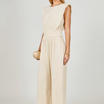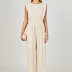 Make a statement in our Shoulder Pad Jumpsuit with Smocked Waist. Featuring structured shoulder pads and a comfortable ribbed knit, this jumpsuit combines style and ease. The smocked waist creates a flattering silhouette, while high-quality materials ensure a polished look for any occasion. Versatile and fashion-forward, it’s a must-have piece that effortlessly turns heads.