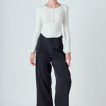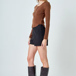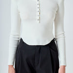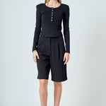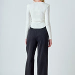 Elevate your winter wardrobe with our Shoulder Pad Knit Top. Crafted from the softest knit material, this top features statement shoulder pads for a stylish and structured look. The relaxed fit and mock neck add a contemporary touch, making it a versatile piece for any occasion. Perfect for layering or wearing on its own, this top will keep you warm and fashion-forward. Upgrade your sweater collection with our Shoulder Pad Knit Top and make a bold statement this season. Shop now and stand out from the crowd in style.