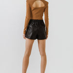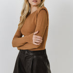 This Shoulder Pad Knit Top is the perfect combination of fashion and comfort. Featuring ribbed stretch material, shoulder pads, an open back with button loop closure, this stylish top will have you feeling your best. Its unique design creates a flattering silhouette and is sure to stand out in your wardrobe. From casual to formal, our shoulder pad knit top has you covered. With its comfortable yet stylish fit, it's a must-have for any wardrobe.