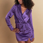Sexy, sleek, comfortable - this mini dress does it all! Made with a beautiful satin fabric and unique button details, this satin mini dress is the perfect outfit for a date night, party, birthday celebration, and any other special occasion! Plus, the lining and side zipper makes sure the dress is secure and comfortable all night long.