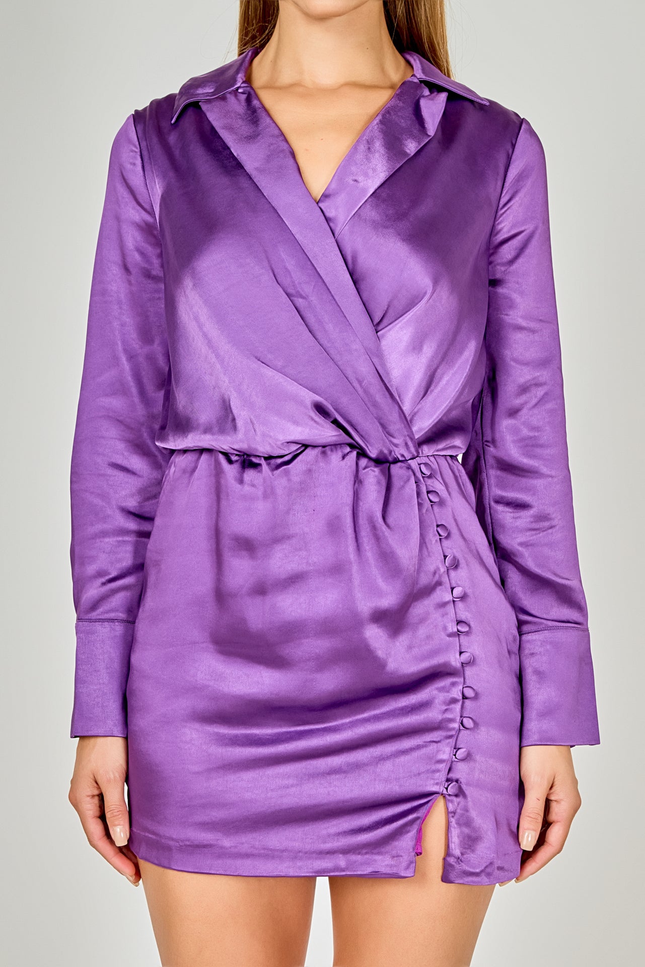 Sexy, sleek, comfortable - this mini dress does it all! Made with a beautiful satin fabric and unique button details, this satin mini dress is the perfect outfit for a date night, party, birthday celebration, and any other special occasion! Plus, the lining and side zipper makes sure the dress is secure and comfortable all night long.