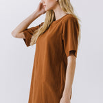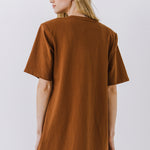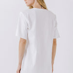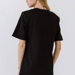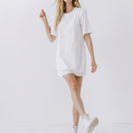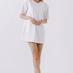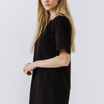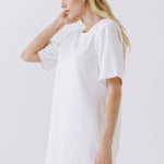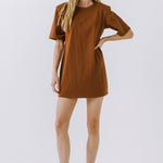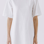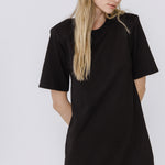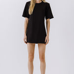 This Shoulder Pad T-Shirt Dress is a wardrobe must-have! Featuring a stylish round neckline, short sleeves, and a boxy silhouette, it's the perfect addition to any outfit. Our unique shoulder pad insert adds structure and a touch of sass, making this dress a standout. With its comfortable fit and comfortability, you'll look amazing no matter what the occasion. Show off your fashion-forward style with this shoulder-pad t-shirt dress!