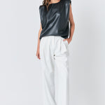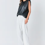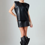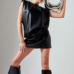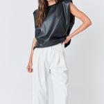 This Shoulder Padded Faux Leather Top is the perfect blend of style and comfort. Crafted with faux leather and a boxy fit, it offers a regular length with a sleeveless design. Its shoulder padding adds a stylish touch to any look. With its unique design, this top is the perfect choice for a stylish look. Get it now and be the envy of all.