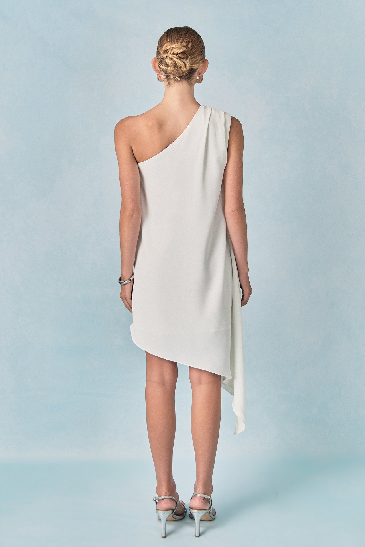 Make a statement in this stylish Shoulder Pintucked Asymmetrical Mini Dress. Its one-shoulder design features an asymmetrical waterfall hemline and shoulder pintuck detail for an eye-catching piece. Dress it up or down for any occasion.