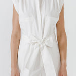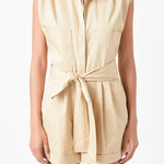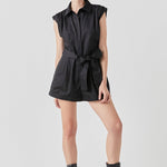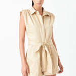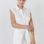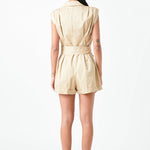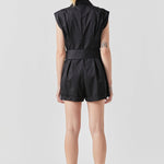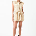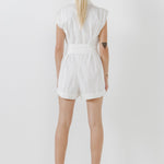 Shoulder Pleated Collared Romper