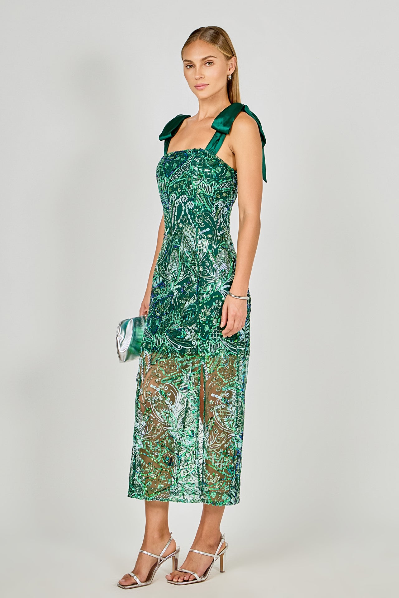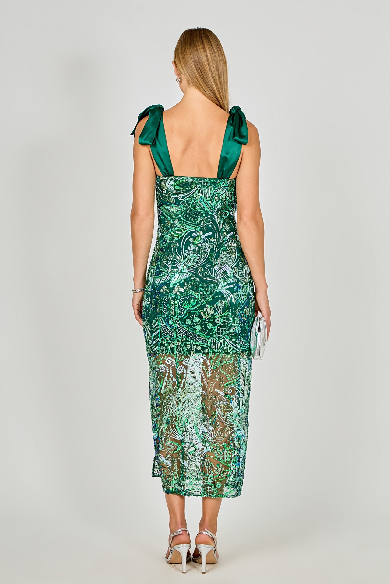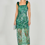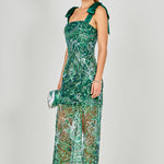 Shoulder Tie Sequins Maxi Dress