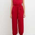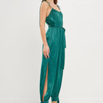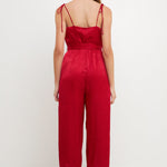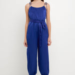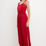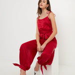 Get a leg up on style this season with our chic jumpsuit. With its side bow tie and tapered pant, this jumpsuit is sure to make a statement. Plus, the leg slits give it an extra edge. Dress it up or down, either way you'll look amazing.