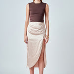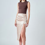 This skirt is sure to become a closet staple. The midi length and ruched front detail make it perfect for work or a more formal occasion, while the side slit and zipper closure add a touch of fun and flirty. The side zipper closure makes it easy to get in and out of, and the skirt is sure to keep you comfortable all day long.