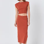 This Side Slit Detailed Knit Midi Skirt is the perfect way to show off your curves! The fitted midi skirt hugs your hips and thighs, while the side slit adds a touch of sexiness. The matching crop top completes the look, making you look professional and fun at the same time.