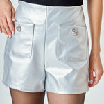 Our Silver Outpocket Shorts stand out with beautiful front details. A high waisted fit and back waist dart create a flattering silhouette. Show off the front patch pockets with buttons that add the perfect touch of style. An invisible side zipper closure makes for easy dressing. Stand out and upgrade your wardrobe with these unique shorts.