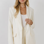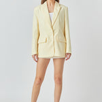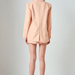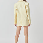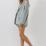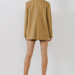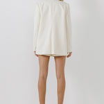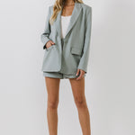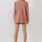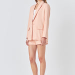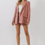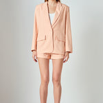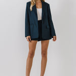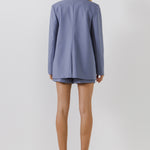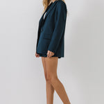A must-have wardrobe staple for the season. From the office to the weekend, this single-breasted blazer is perfect for any occasion. The matching shorts are a chic addition to this look. The clean lines and tailored details of this blazer will keep you looking professional all day long