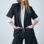 Upgrade your wardrobe with our Brynn Single Breasted Short Sleeve Blazer. Designed for a regular fit, this blazer features short sleeves and a front button closure for a stylish yet comfortable look. The V-neckline adds a touch of sophistication, making it perfect for both formal and casual occasions. This blazer will become your go-to piece for any ensemble. Dress it up with tailored pants or keep it casual with jeans, either way, our blazer will quickly become a versatile staple in your closet. Elevate your style with our Brynn Single Breasted Short Sleeve Blazer.