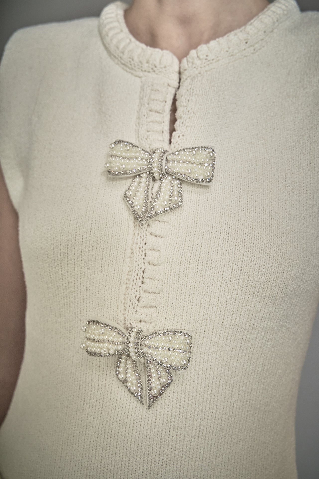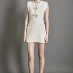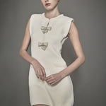 Turn heads in our Sleeveless Mini Knit Dress with Bow Accents. Featuring a flattering V-neckline and mini length, this dress combines flirty charm with effortless style. The front bow details add a feminine touch, while the back zipper ensures easy wear. Perfect for date nights or nights out with friends, this versatile dress is a must-have addition to your wardrobe.