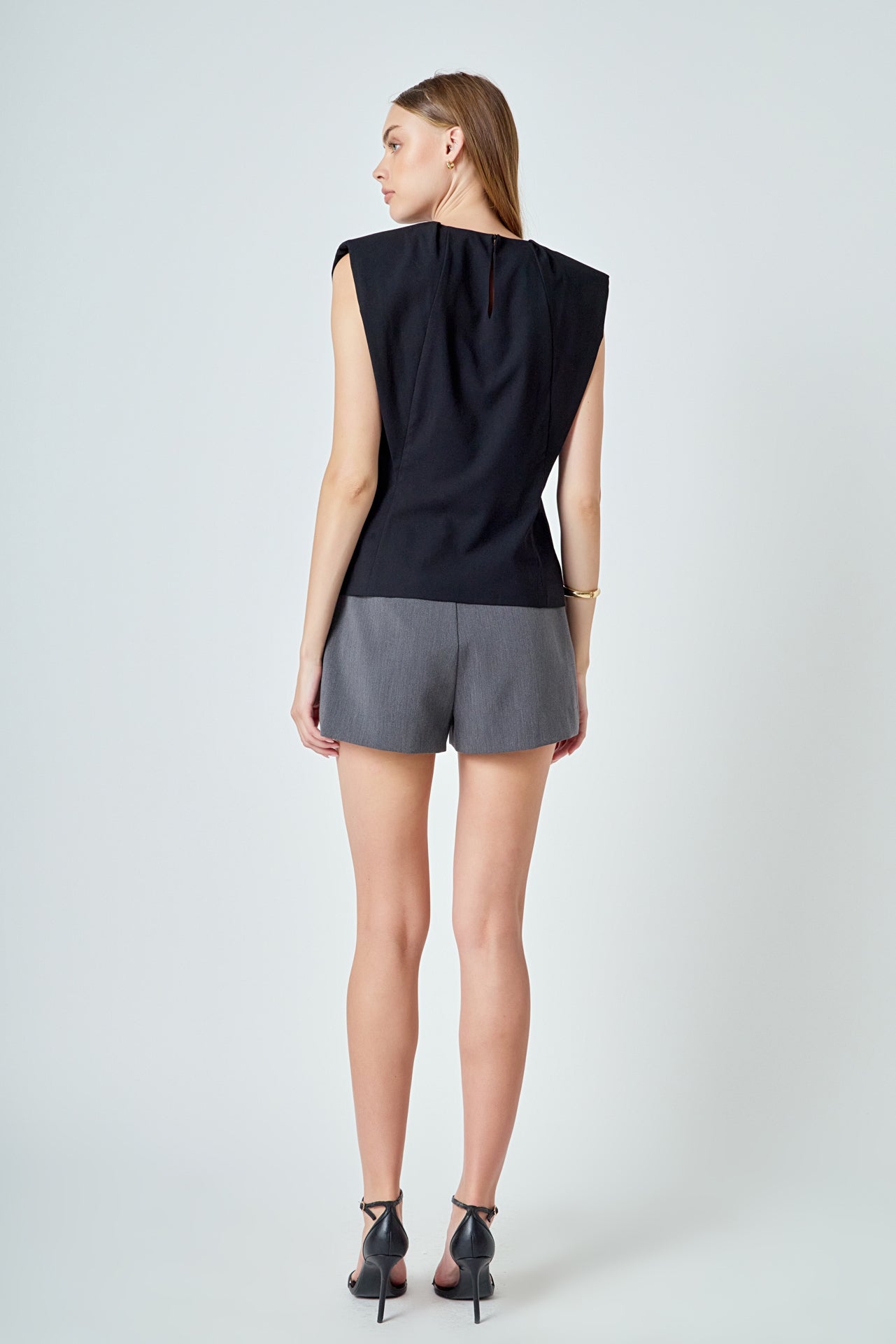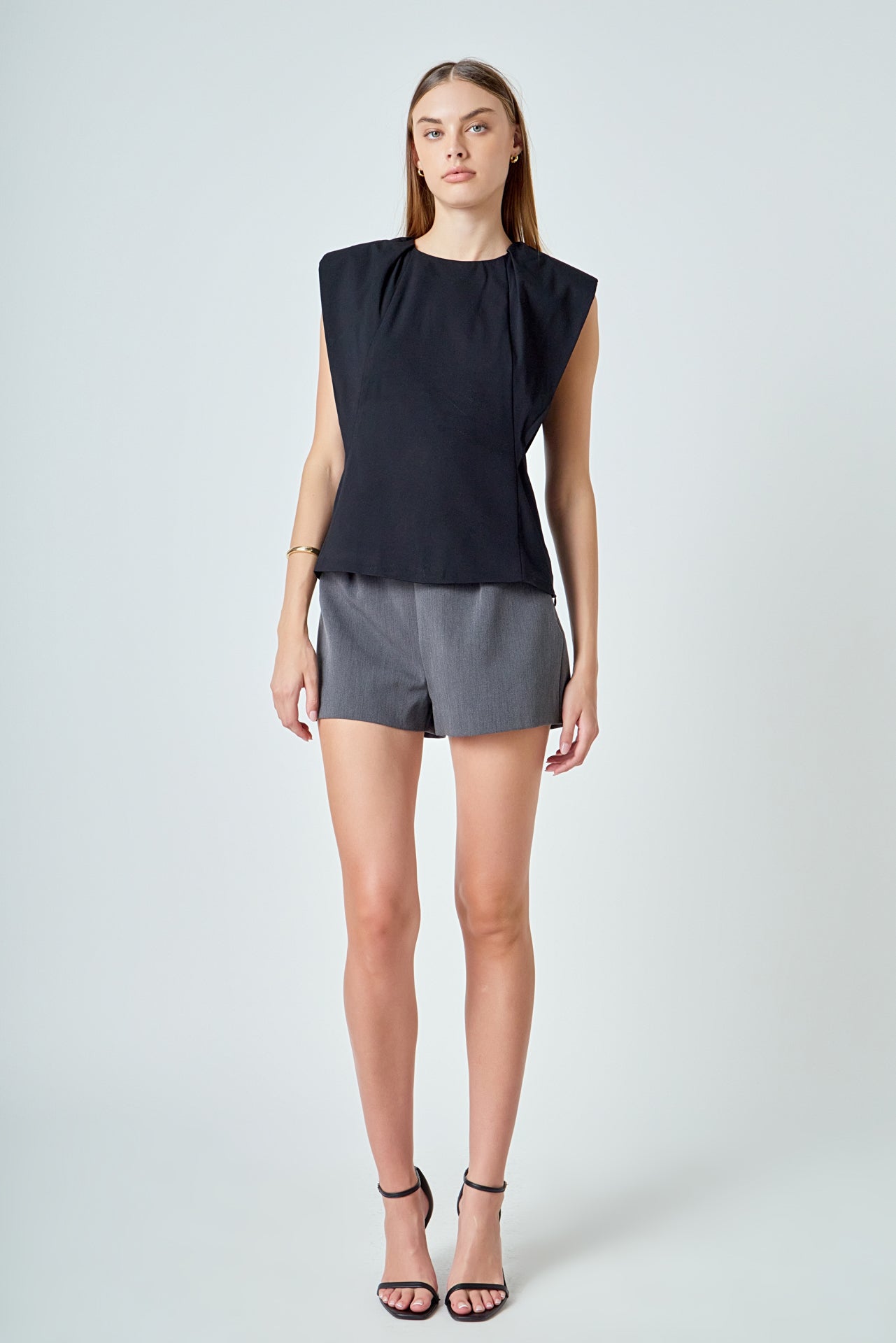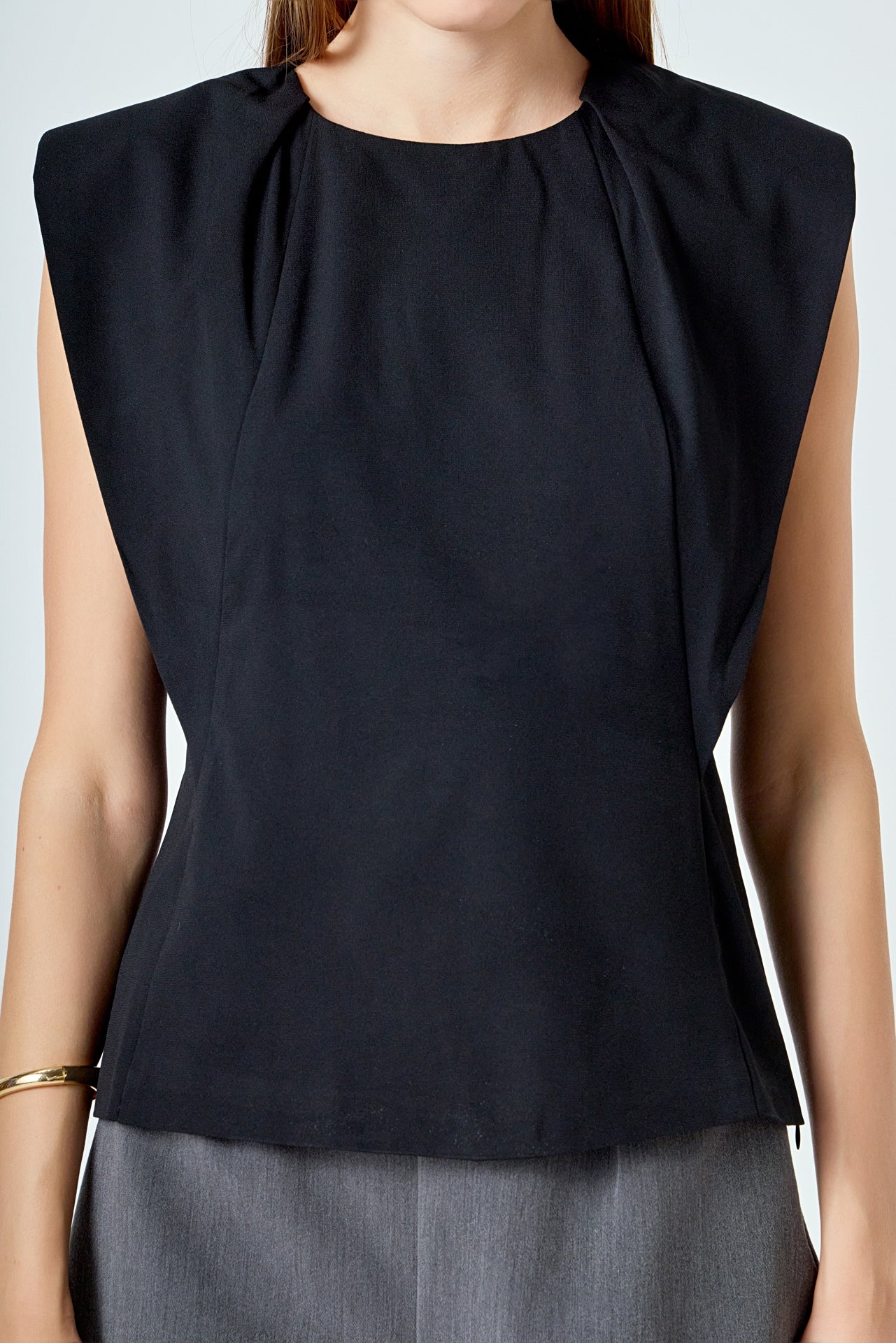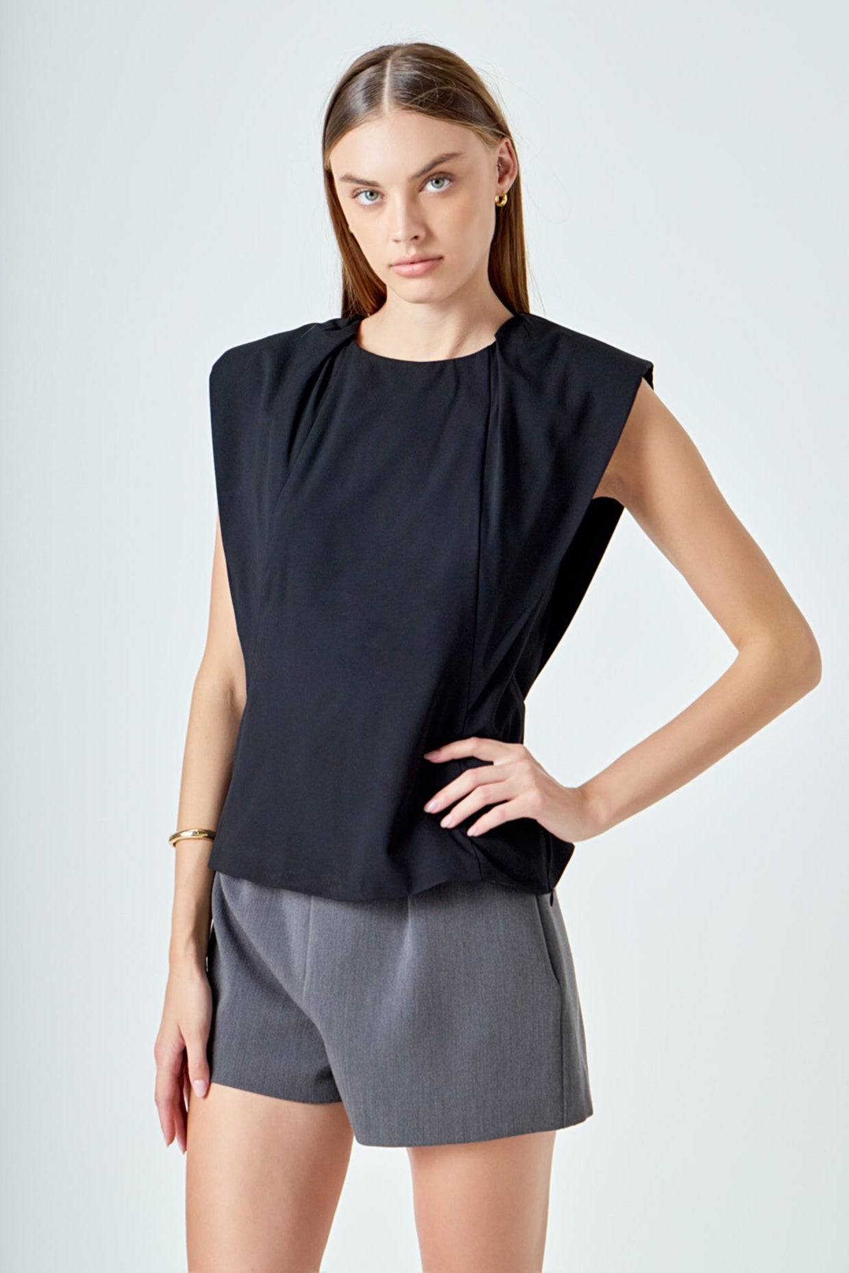 Introducing our Sleeveless Pleated Top, the perfect addition to your wardrobe. Featuring a flattering round neckline, a chic back keyhole, and a stylish sleeveless design, this top is sure to turn heads. The pleats detail at the neck adds a touch of sophistication to this versatile top. Made from high-quality fabric, it is comfortable to wear all day long. Ideal for both casual and formal occasions, this top is a must-have. Don't miss out on the opportunity to elevate your style game with our Sleeveless Pleated Top. Get yours now!